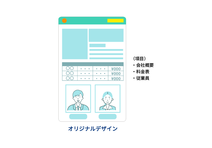 事業内容やご希望に合わせて文字や写真、色合いなどをデザイン。ロゴやキャッチコピーも反映可能ですので、オリジナリティあるホームページに仕上がります。